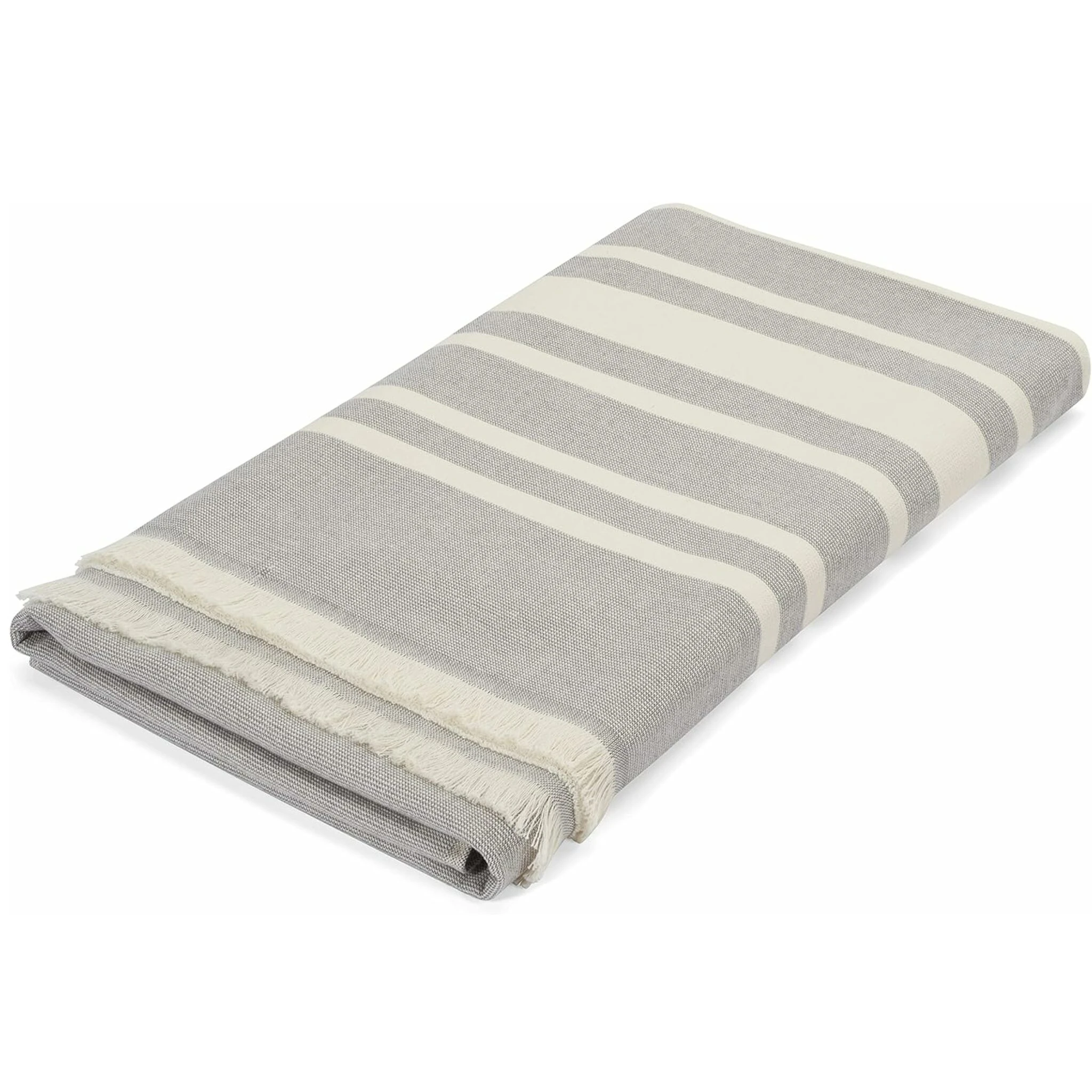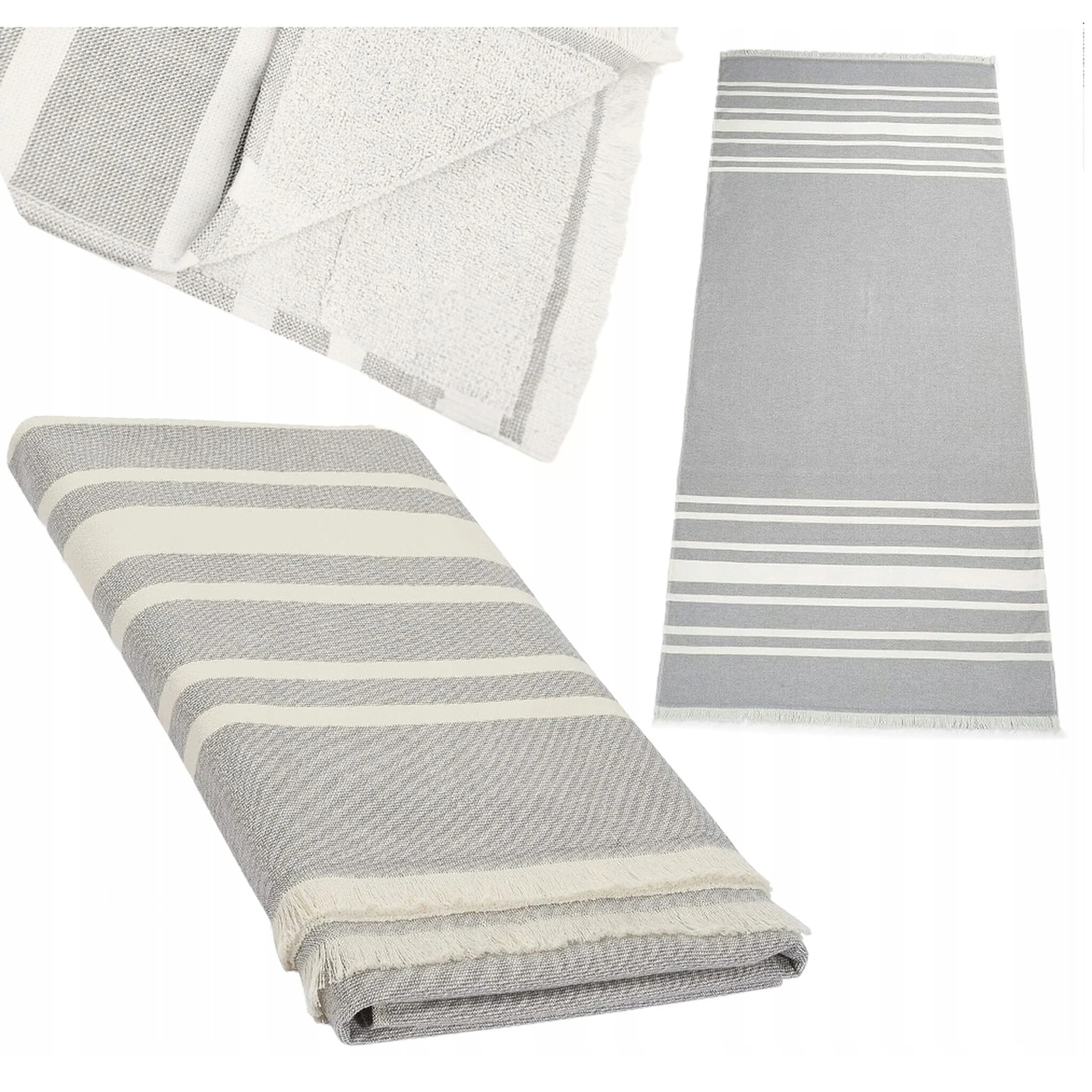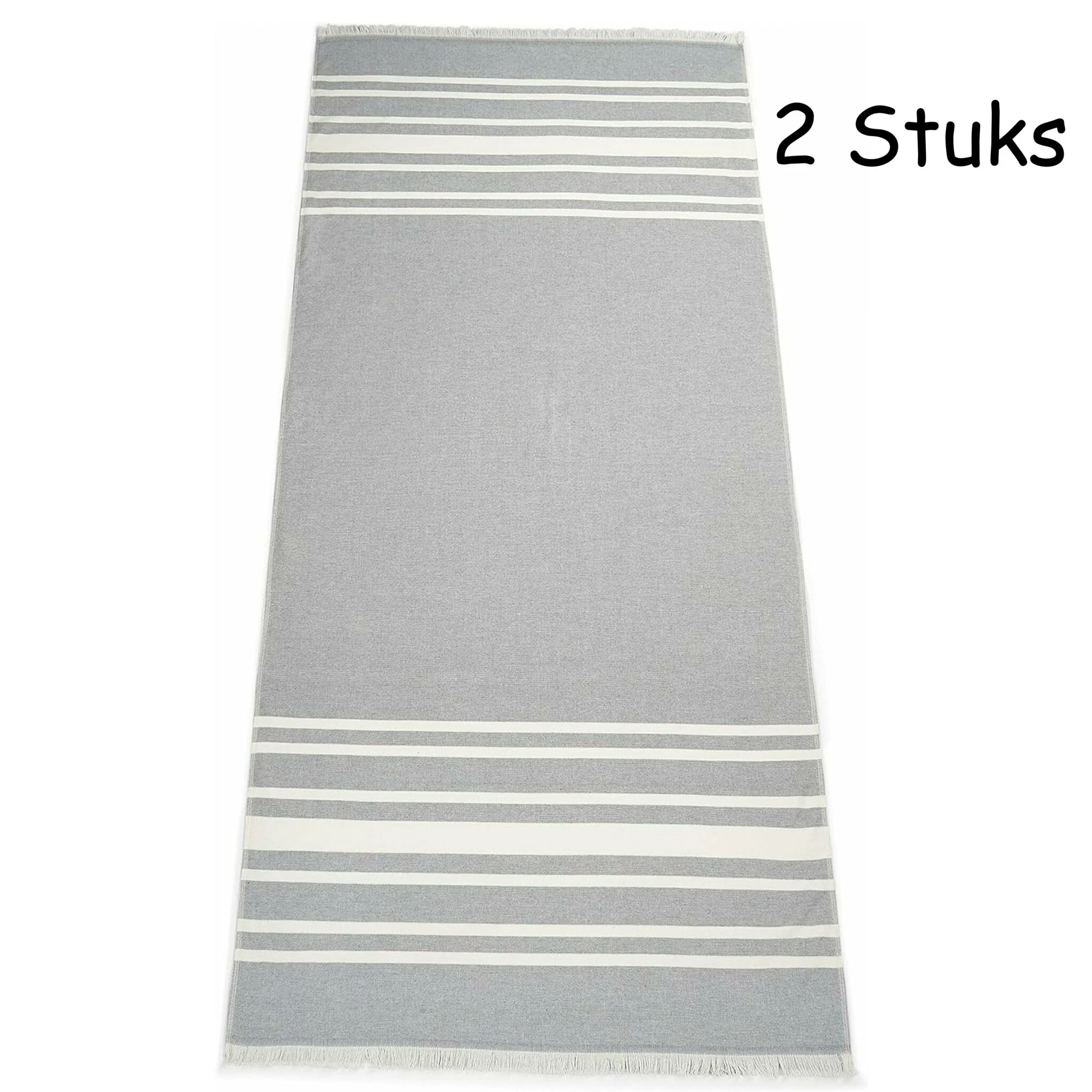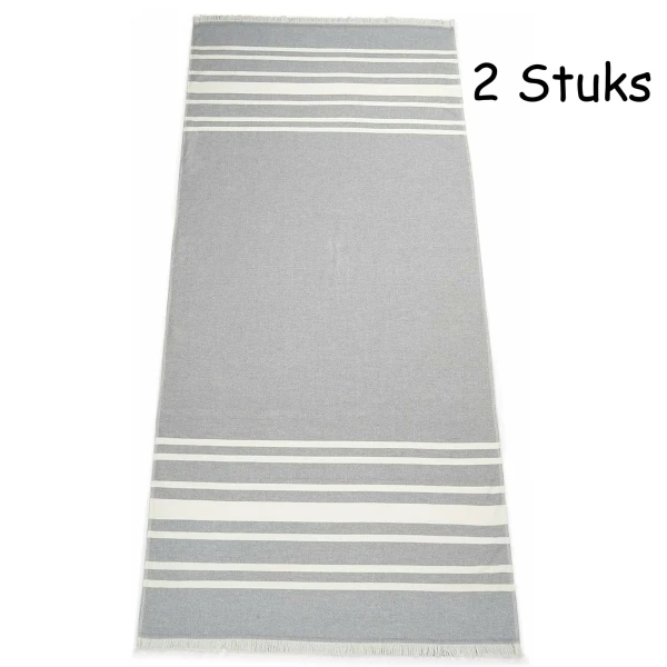 2 Stuks – Fouta, Hamamdoek, Strandhanddoek, Saunadoek – Naturel & Grijs – 80cm x 180cm