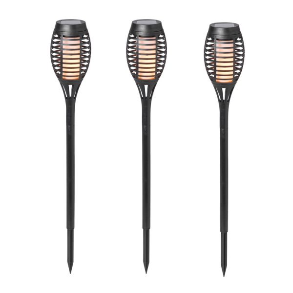 3 Stuks – Tuinlamp Fakkel – Solar – Realistisch vlameffect – 48 cm – Brandt 6-8 uur