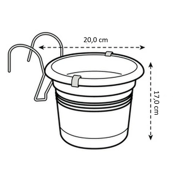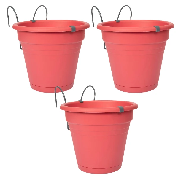 3 x Hangpot Kunststof – Tuin Balkon Bloempot Relingpot Met Wateroverloop D.20 H17 cm – Framboos