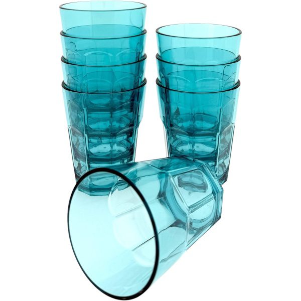 8 Kunststof Drinkglazen – 390ml – Blauw Transparant – BPA Vrij – 9x9x11cm