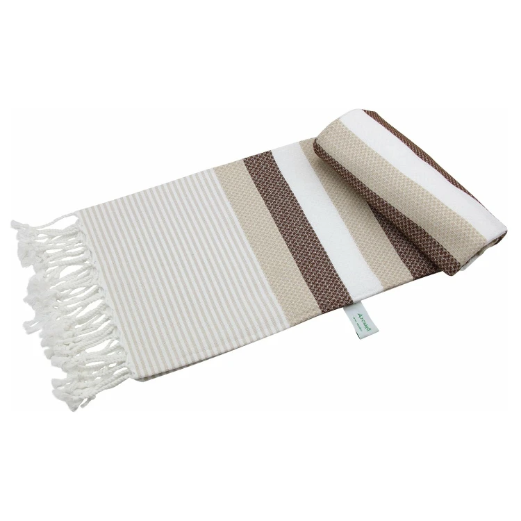 Arowell Honeycomb Banded Pestemal – Fouta – Hamamdoek – Hammamdoek – Bruin – 180 x 100 cm