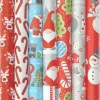 Veilig online shoppen doe je bij ons!Assortiment van vijf rollen cadeaupapier voor kerstmis.