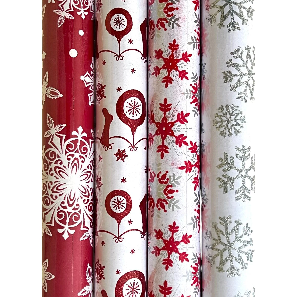 Assortiment Luxe Kerst Inpakpapier Cadeaupapier Met Foliedruk En Glitter – 150 x 70 cm – 3 Rollen