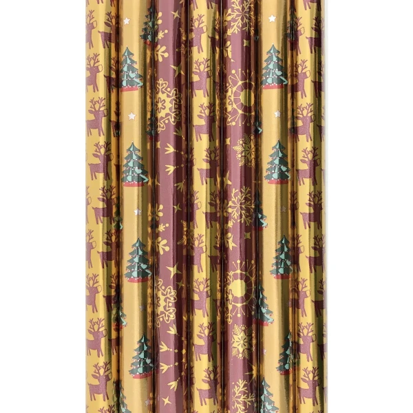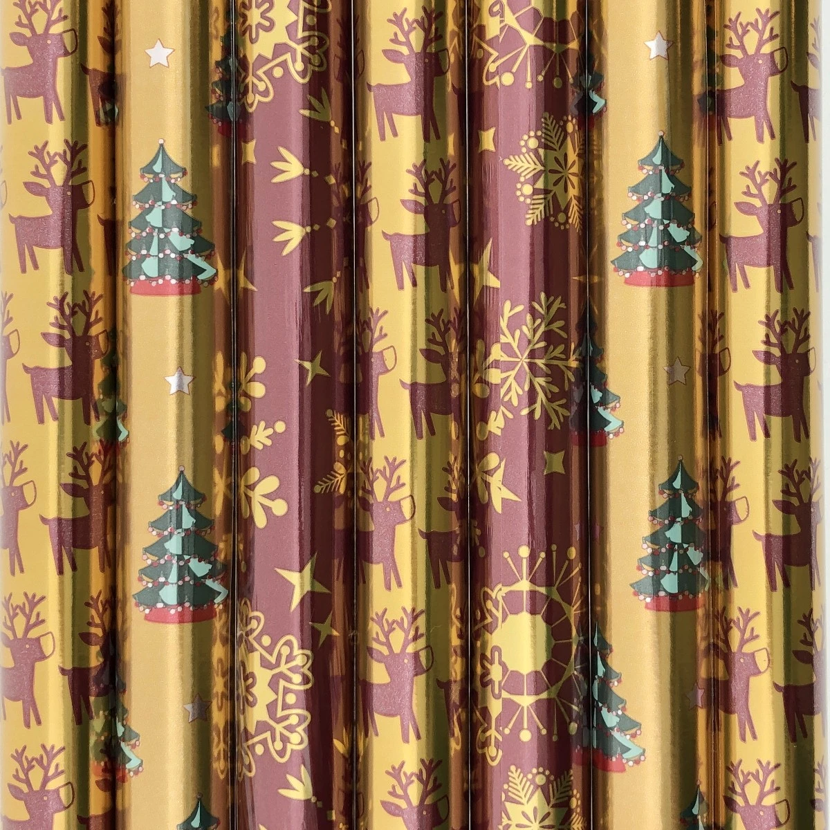 Deze kerst metallic serie bestaat uit 3 designs, u ontvangt in totaal 7 rollen.