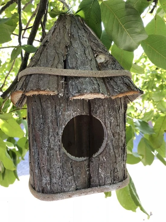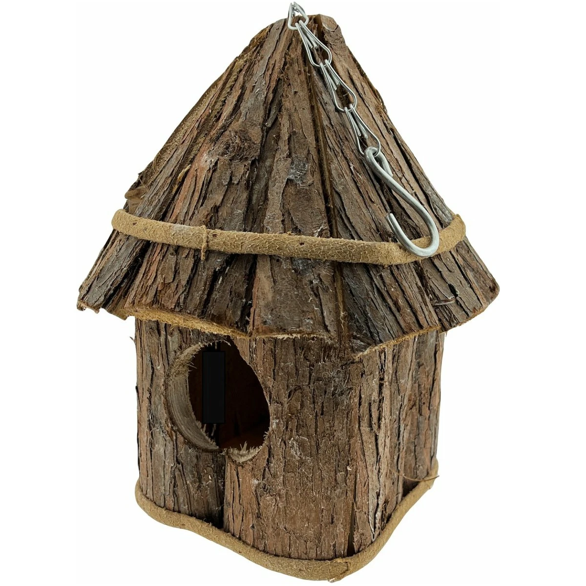 Veilig online shoppen doe je bij ons!Dit houten vogelhuisje is een echte eye catcher voor in huis. Het onbewerkte hout geeft het authentieke vogelhuis een authentiek karakter. Het vogelhuisje kan worden opgehangen aan de bij geleverde ketting in de tuin of op het terras en is ideaal als nest of schuilplaats voor kleine vogels.