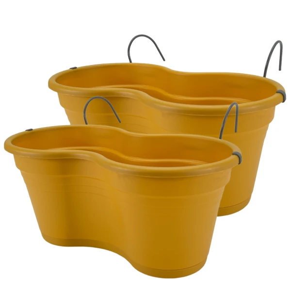 Balkon bloembak Hangbak Compleet – Okergeel – 37 x 20 x 17 cm – 2 Stuks