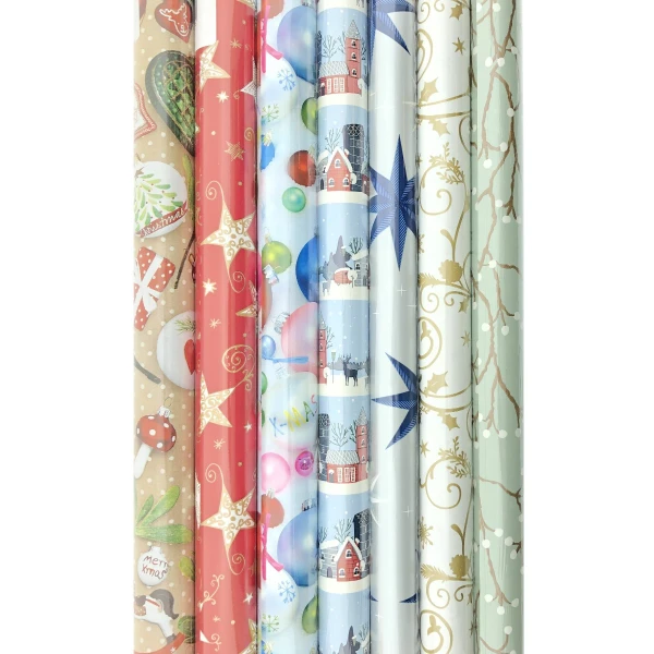 Ben je op zoek naar kerstpapier om je cadeautjes mooi in te pakken? Dan is dit aanbod van 5 rollen kerstpapier van 200 x 70 cm en 2 rollen van 300 x 70 cm per rol misschien iets voor jou. Deze rollen zijn perfect om cadeaus van verschillende groottes in te pakken.