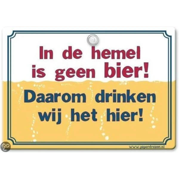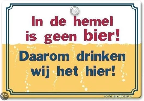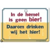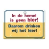 Benza Metal Slogan, Spreukenbord, Tekst Bord – In de hemel is geen bier! Daarom drinken we het hier!