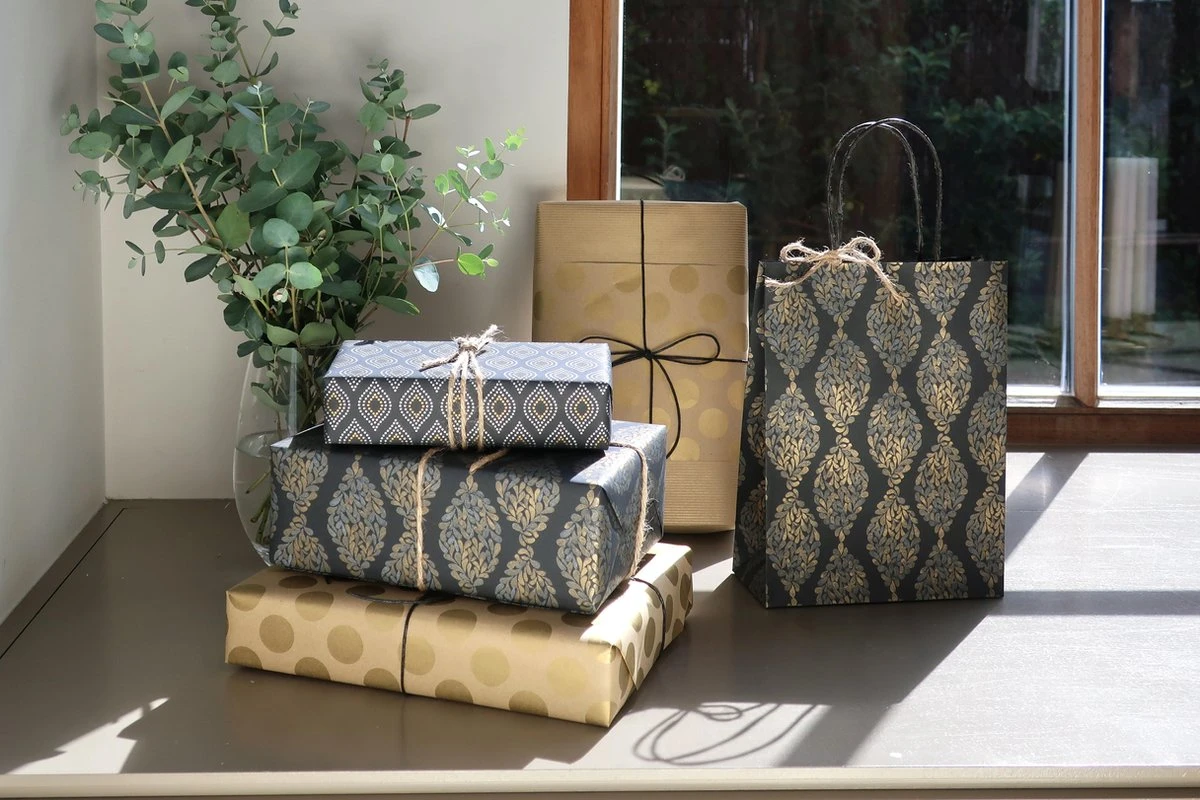 Het assortiment bevat bruin en zwart papier met goud kraftdetails, waardoor je cadeaus een stijlvolle uitstraling krijgen. Of het nu voor verjaardagen, feestdagen of speciale gelegenheden is, dit cadeaupapier maakt van elk geschenk een eyecatcher.