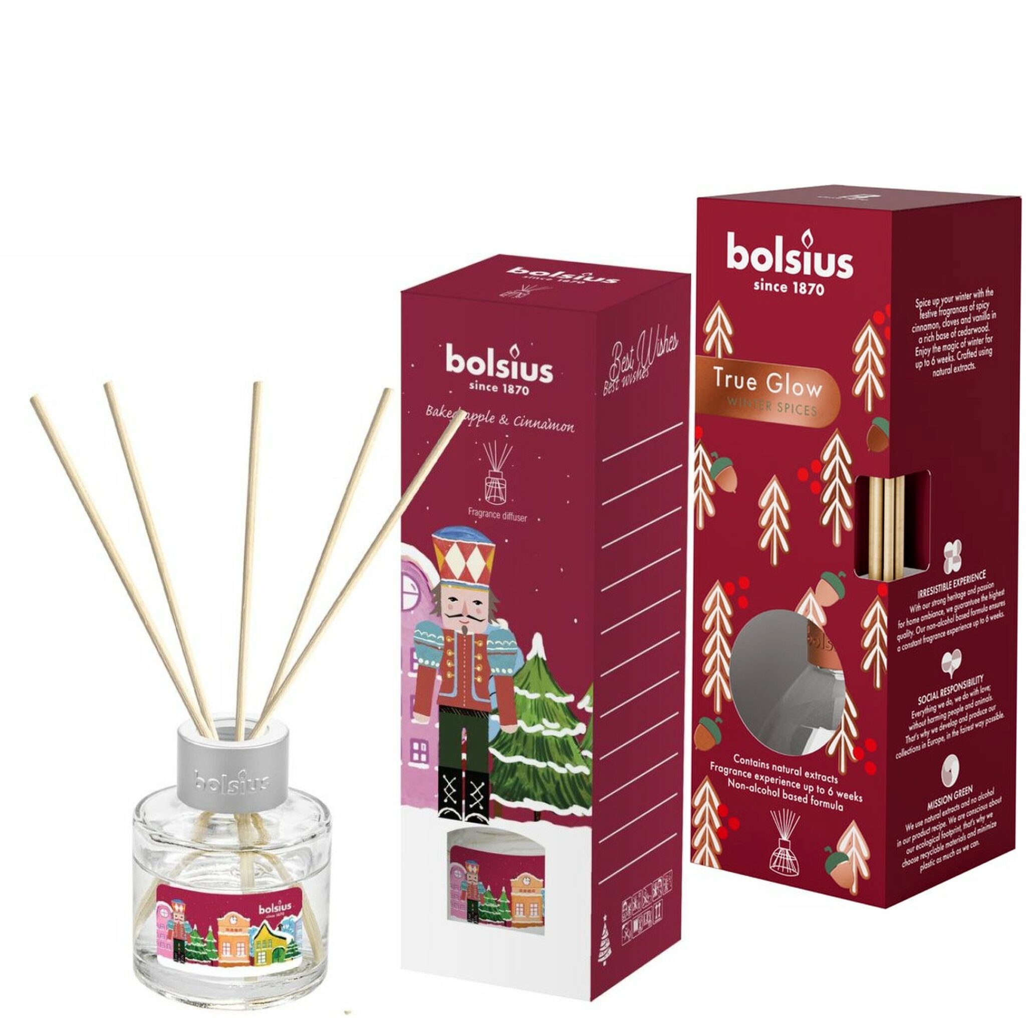 Bolsius Geurstokjes Set – True Glow Winter Spices & Notenkraker Baked Apple & Cinnamon – 2x 30 ml – Tot 6 weken geurbeleving