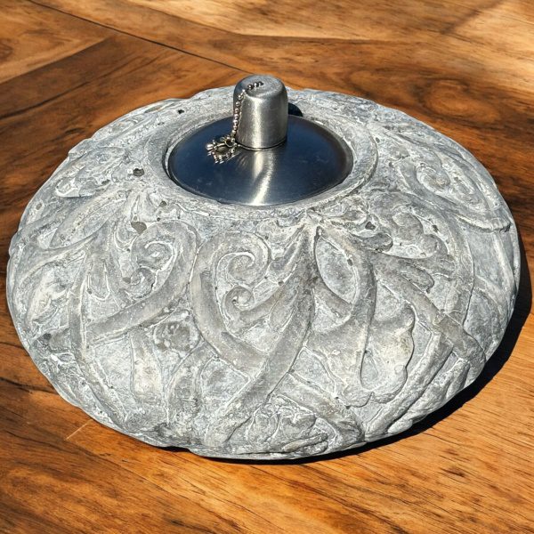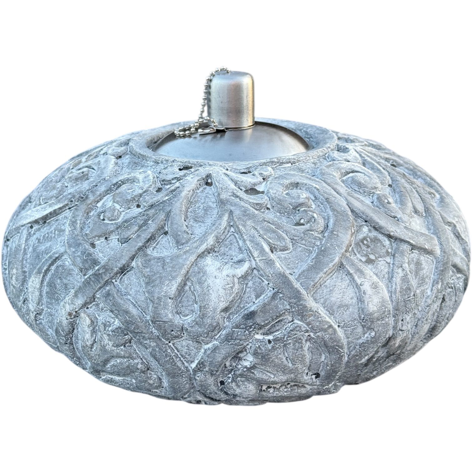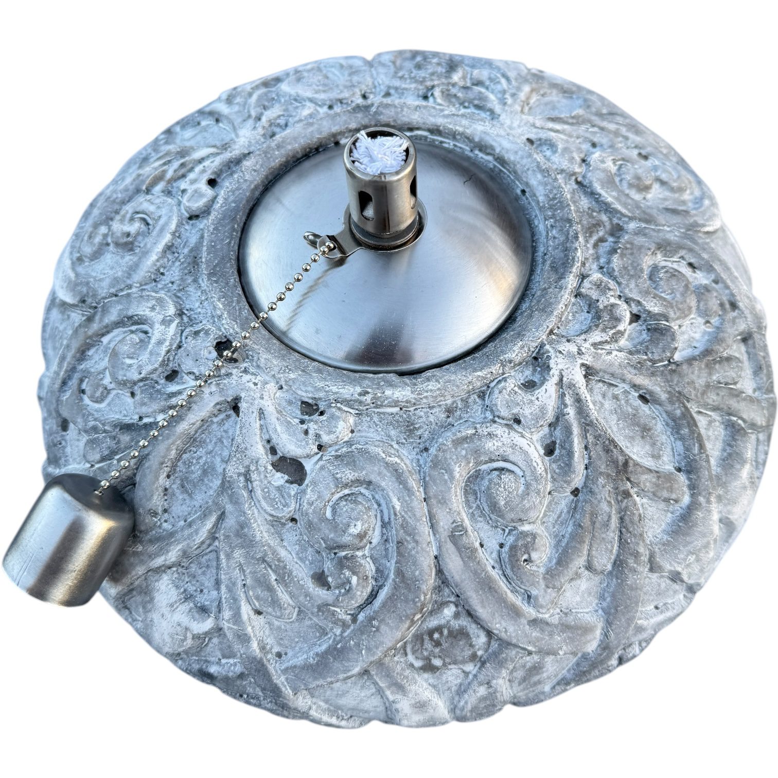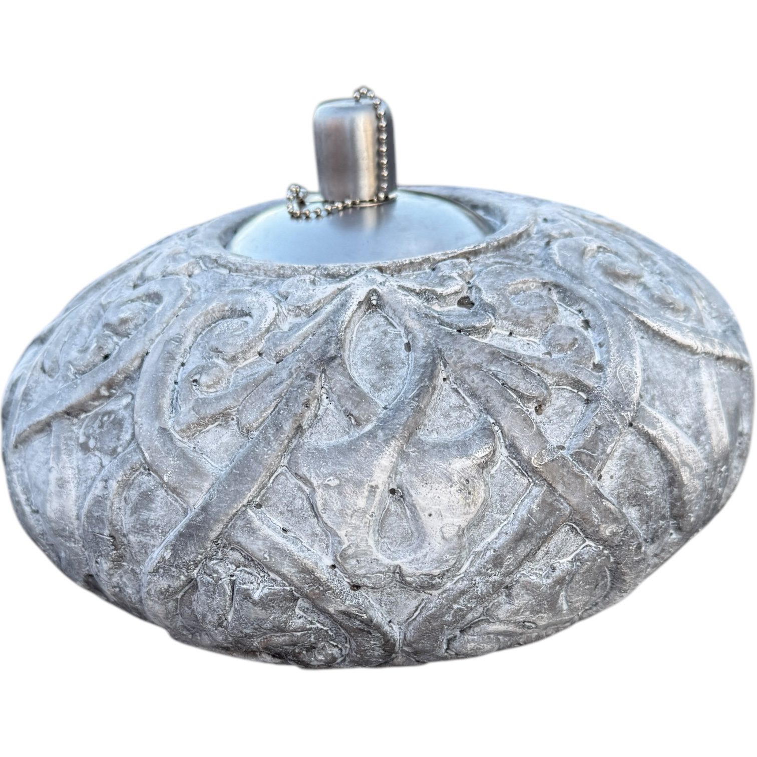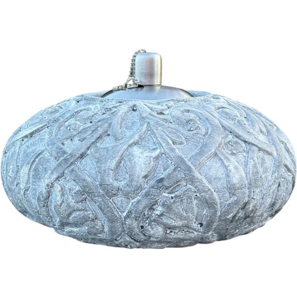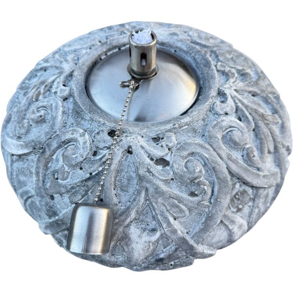 Brocante Olielamp Rococo Tuin of Terras Cement Ø25×15,5cm – 7 kg – Grijs