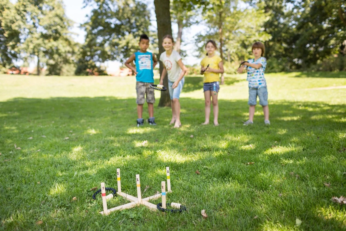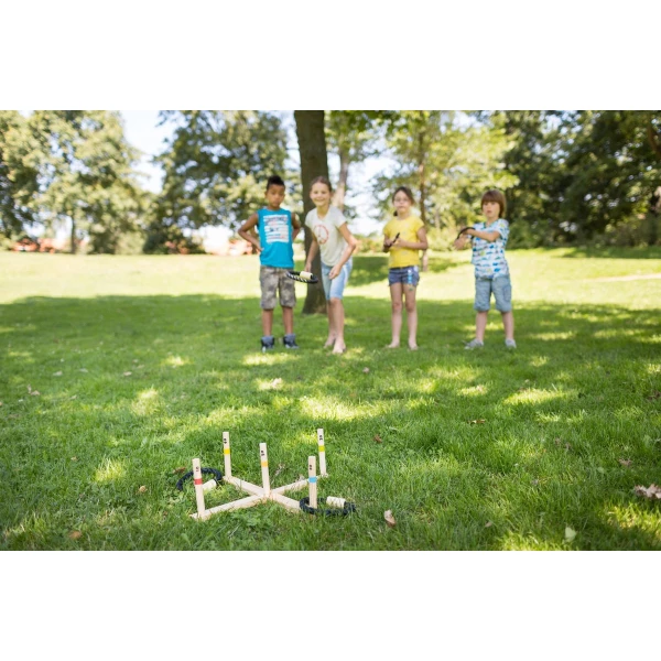 BS Toys Ringwerpen Werpspel Gooi de ringen om de paaltjes en scoor punten. Dit is een uitdagend behendigheidsspel voor jong en oud! werp de ringen en probeer met de verdubbelaar je punten nog verder te verhogen. Dit werpspel is ideaal voor het ontwikkelen van moteriek.