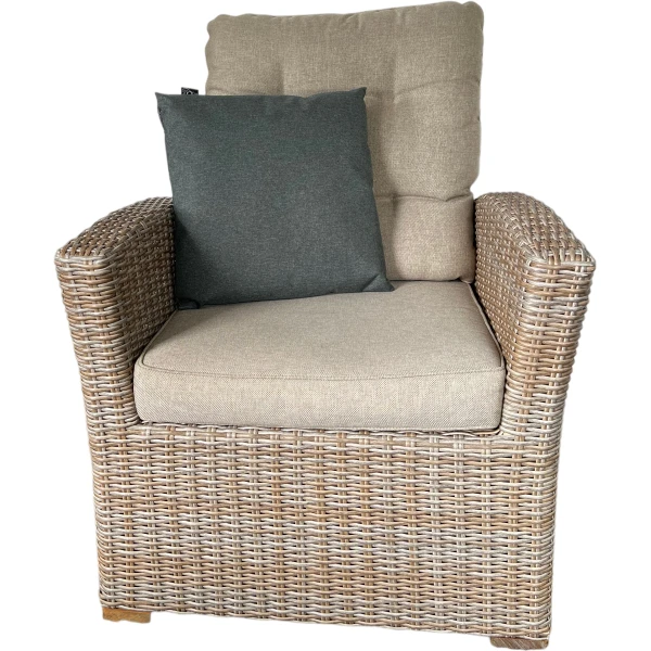 Het kussen is gemaakt van hoogwaardig polyester en uitgevoerd in een prachtige kleur. De stof is voorzien van een waterafstotend laagje zodat waterdruppels er op blijven liggen. De kussens kunnen dus best tegen een buitje, echter adviseren wij wel om de kussens binnen te leggen indien mogelijk. Dit zal de lHet kussen is gemaakt van hoogwaardig polyester en uitgevoerd in een prachtige kleur. evensduur van de kussens vergroten. Het kussen is voorzien van een handige blinde ritssluiting en is gevuld met een compacte vulling wat zorgt voor extra stevigheid en een luxe uitstraling.