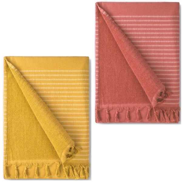 Byrklund Hamamdoek Hammamdoek – Katoen & Badstof – Geel & Koraal – 2 Stuks