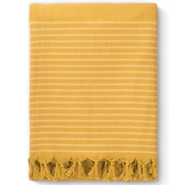 Deze Byrklund Hamamdoek is ideaal voor een dagje sauna of op het strand. Dankzij de grote afmeting wikkel je hem gemakkelijk om hele lichaam. Aan de uiteinden is een gezellige streepmotief verwerkt. De badstof aan de binnenkant is afgewerkt met vrolijke franjes. Vanwege de dunne, maar stevige materiaal een handige aanwinst op iedere vakantie naar zee. De hamamdoek neemt weinig ruimte in je bagage.
