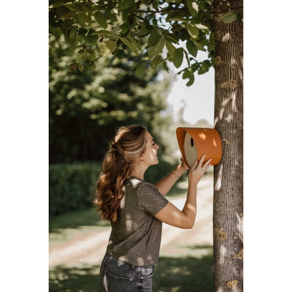 Dit product beschikt over de volgende producteigenschappen: Trekt alleen solitaire bijen aan Gemaakt van 100% gerecyclede materialen en 100% recyclebaar Gemaakt uit natuurlijke materialen Het gaatjesframe biedt bescherming tegen rovers Er zijn 3 manieren om het bijenhotel te plaatsen: aan een schroef, op een stok of met een band aan de regenpijp
