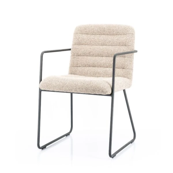 Ervaar het ultieme zitcomfort met de Eetkamerstoel Artego van By-Boo, een perfecte combinatie van tijdloze stijl en comfort. Deze stoel staat bekend om zijn hoge zitcomfort, ondersteund door zachte armleuningen en een aangename stof, waardoor het de ideale keuze is voor lange natafel sessies. Beschikbaar in twee verschillende, doch harmonieus te combineren kleuren, biedt de Artego stoel veelzijdigheid en stijl voor elke eetkamer.