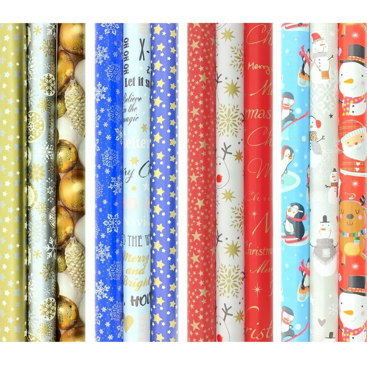 Deze set bevat maar liefst 12 rollen in de kleuren goud, zilver, rood en blauw. Hierdoor kun je eindeloos variëren en je cadeaus een feestelijke uitstraling geven. Of je nu op zoek bent naar klassiek rood en goud of juist wilt experimenteren met moderne tinten, deze set biedt voor elk wat wils.