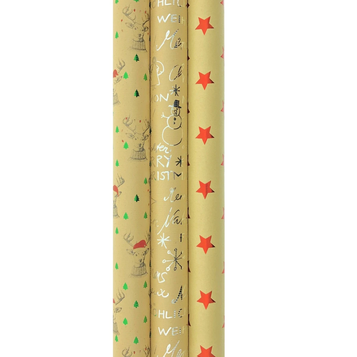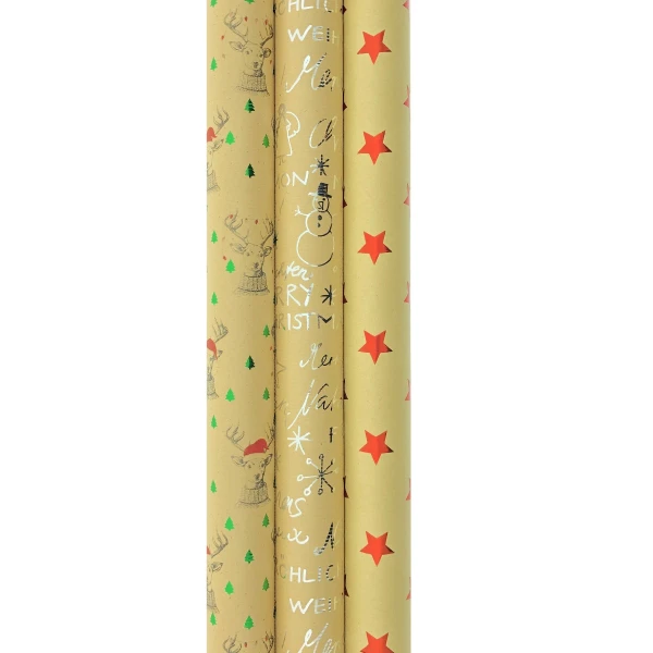 Christmas kraft cadeaupapier – Kerstpapier inpakpapier voor Kerst – 3 meter x 70 cm – 3 rollen