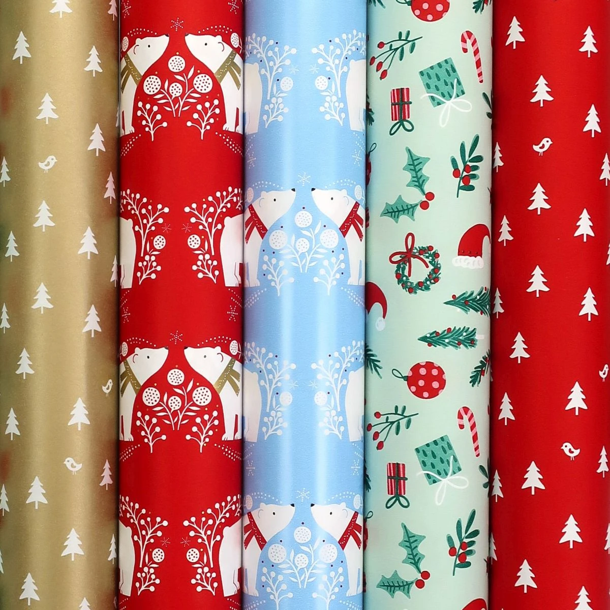 COSY COTTAGE assortiment cadeaupapier inpakpapier voor kerstmis – 2 meter x 70 cm – 5 rollen