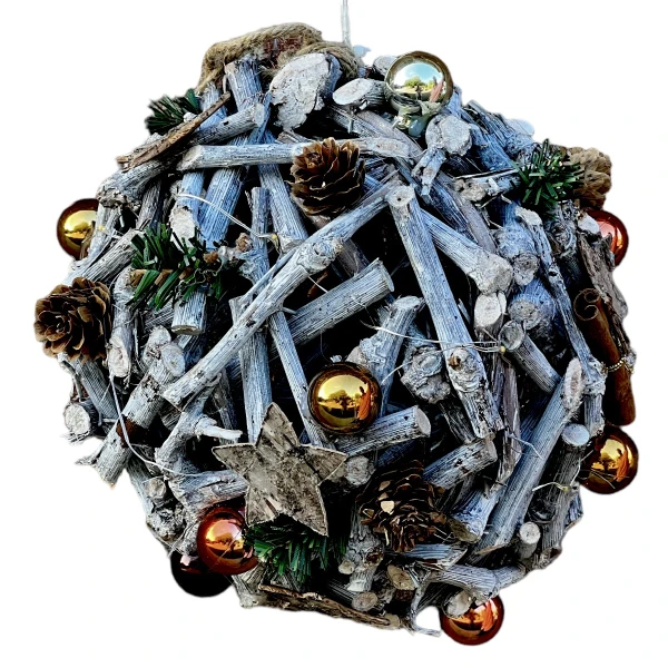 Veilig online shoppen doe je bij ons!De takkenbal is voorzien van Kersballetjes, guirlande, kaneelstokjes, Houten sterren en dennenappels. De Takkenbal heeft een diameter van 19cm., en is voorzien van een ophangkoord.