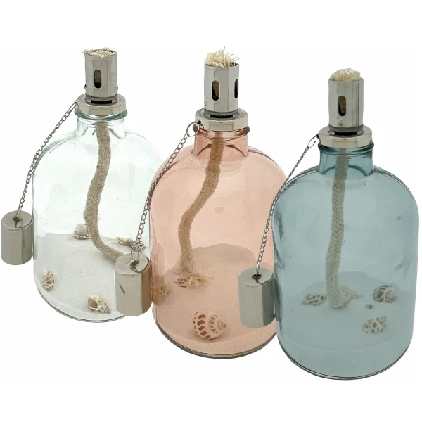 Deco olielamp – Met Wit Zand En Schelpen – 22 x 11 cm – 3 Stuks