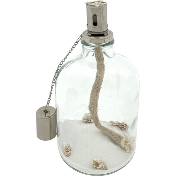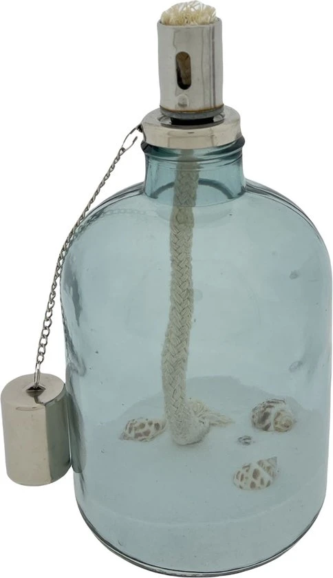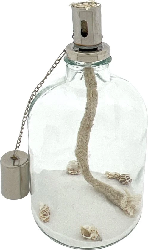 Veilig online shoppen doe je bij ons!Sfeervolle olielampen met wit zand en schelpjes.