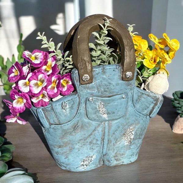 Breng een vleugje creativiteit in uw tuin of huis met deze unieke decoratieve bloempot in jeans-look. Gemaakt van duurzaam magnesia, is deze bloempot niet alleen een opvallende blikvanger, maar ook geschikt voor zowel binnen- als buitengebruik.