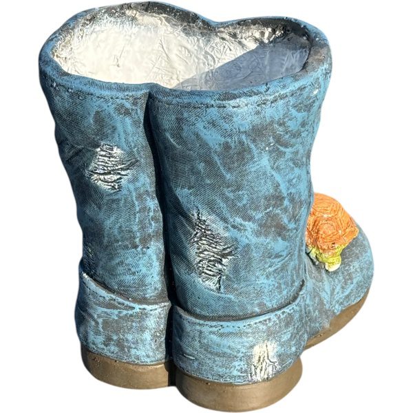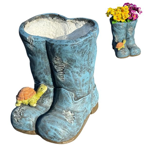 Decoratieve Bloempot in de vorm van een paar laarzen – afmeting 25x22x27 cm – binnen en buiten gebruik