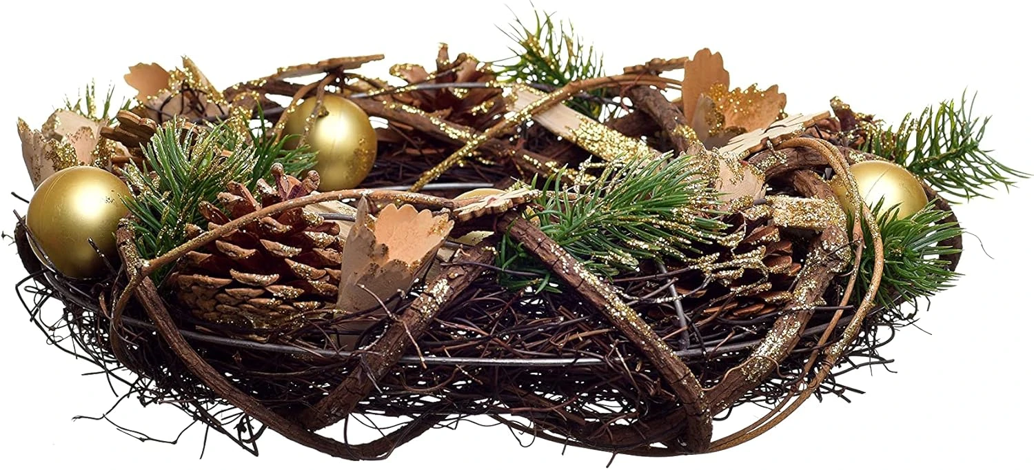 Deurkrans – kerstkrans – Tafelkrans kerstdecoratie – goud, groen – dennentakken – 32 x 32 x 9,5 cm