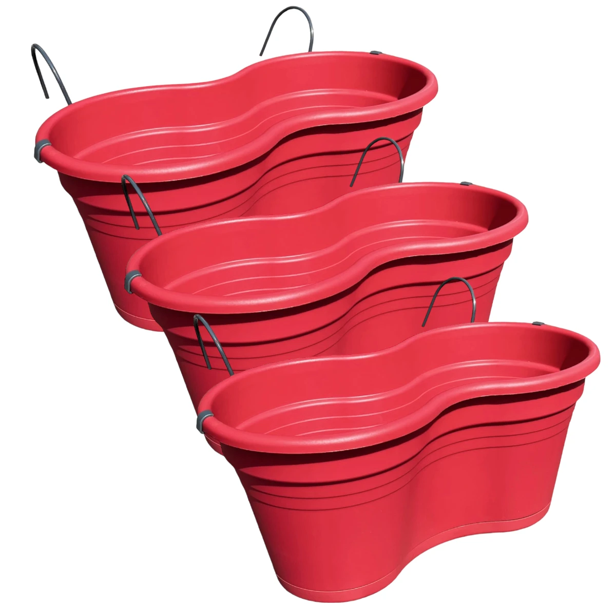 Dubbele Balkon bloembak Hangbak Compleet Relingbloembak – Framboos – 37 x 20 x 17 cm – 3 Stuks