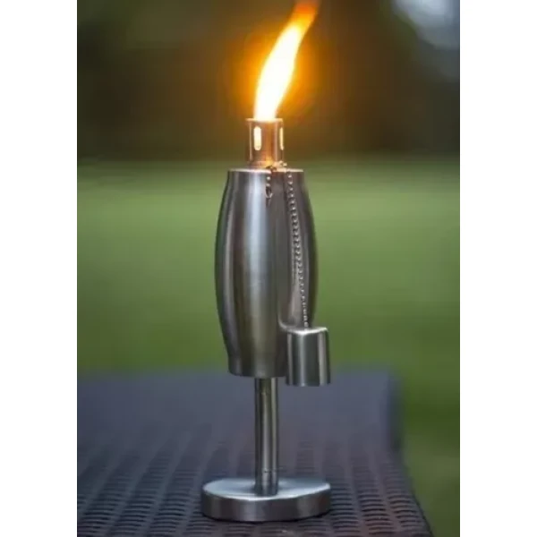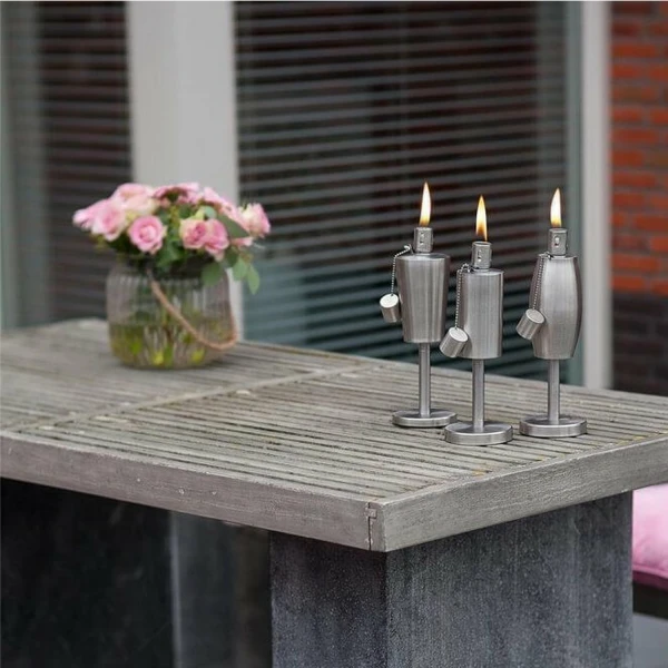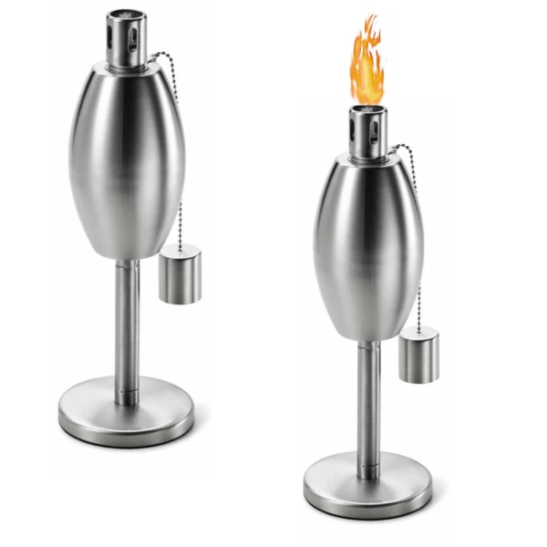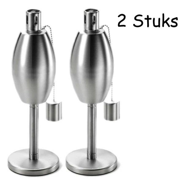 Fire & Deco- Tuinfakkel – olielamp met ovale oliecontainer, van geborsteld RVS en deksel/blusdop – 27 x 10 cm – 2 Stuks