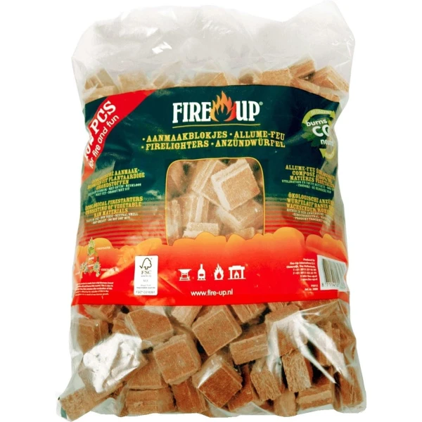 Fire-Up aanmaakblokjes bestaan uitsluitend uit plantaardige grondstoffen: hout en plantaardige olie. De hoeveelheid CO2 die vrijkomt na verbranding van de aanmaakblokjes is gelijk aan de opname van CO2 die planten waaruit dit product is samengesteld, opnemen gedurende hun groeiperiode.