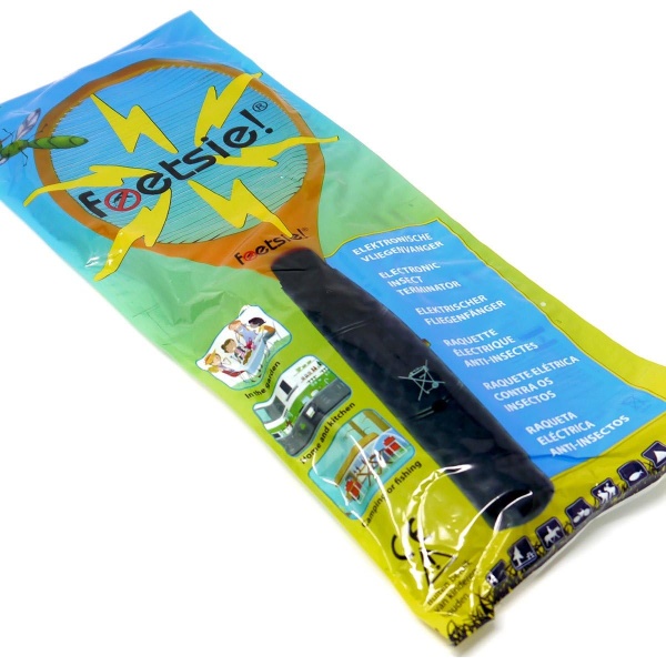De Foetsie! Elektrische vliegenmepper doodt vliegende insecten door middel van elektrocutie bij aanraking. Deze vliegenmepper beschikt niet over een beschermrooster en doodt zo makkelijker grotere vliegen insecten zoals wespen.