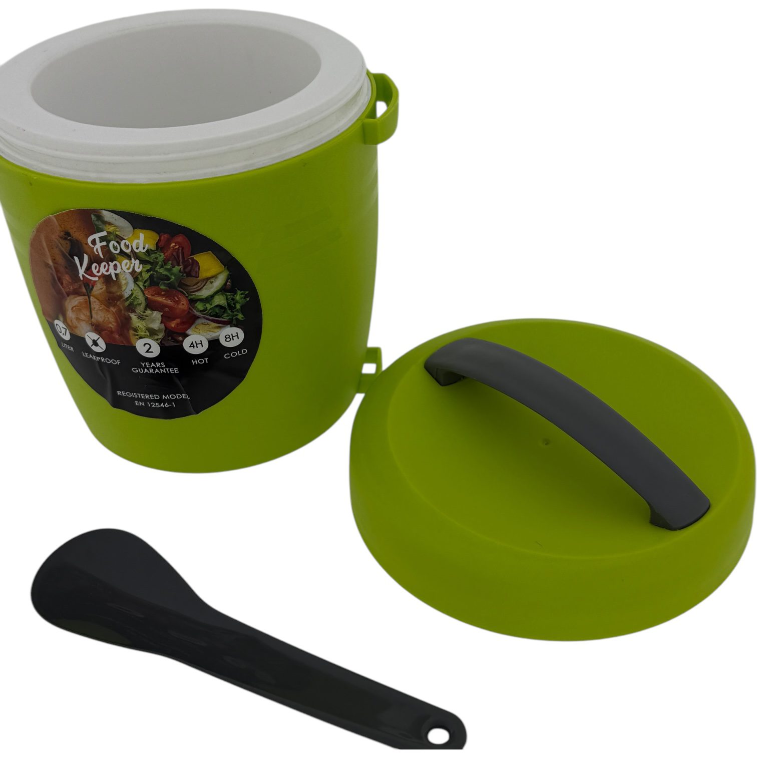 De Foodkeeper is een dubbelwandige kunststof voedseldrager met een inhoud van 1.5 liter. Dankzij de lekvrije constructie blijft je eten veilig en vers. Met een handige hengsel en de bijgeleverde lepel neem je deze voedseldrager gemakkelijk mee.