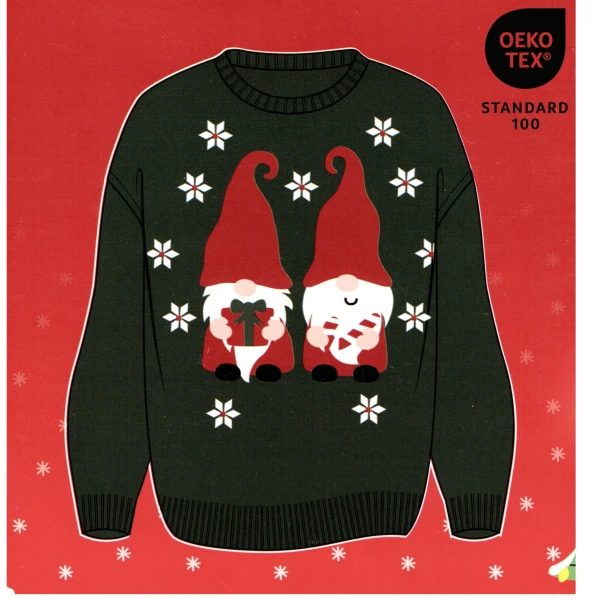 Veilig online shoppen doe je bij ons!Kies dit jaar voor een kersttrui die je stijlvol en comfortabel door de feestdagen brengt. Deze prachtige damesmodel pullover is gemaakt van hoogwaardig acryl en voorzien van 2 grappige Kerst gnome's