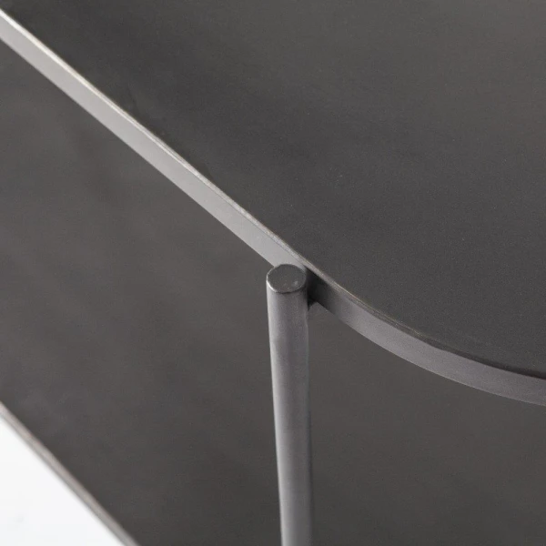 De Burly Bijzettafel mixt industrieel design stijlvol met trendy, ronde vormen. Het frame bestaat uit slanke spijlen die de twee plateaus moeiteloos dragen. De tafel is op deze manier erg stevig. Aan de korte zijdes zijn de plateaus prachtig afgerond. Doordat het gehele meubel is vervaardigd uit ijzer blijft het toch uiterst industrieel. Zet de Burly in de woonkamer of slaapkamer en vul hem met je mooiste en leukste accessoires. Naast de bijzettafel is de Burly ook te verkrijgen als boekenkast. Deze tafel is handgemaakt en kan hierdoor mogelijk oneffenheden hebben.