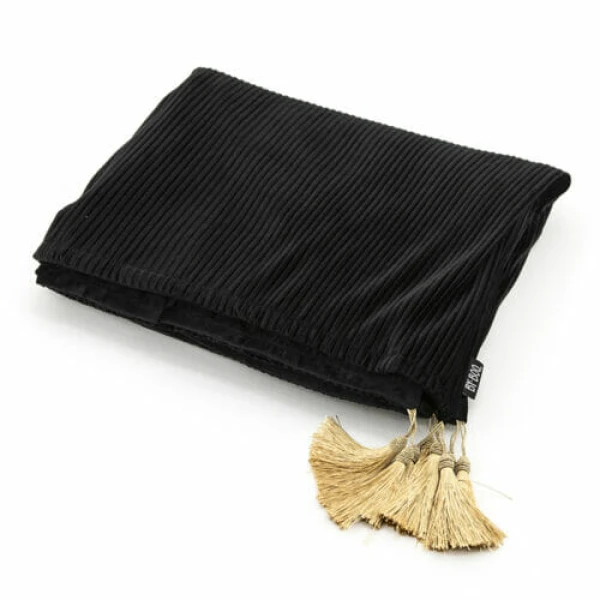 Het deken Royalty is een rijke toevoeging voor ieder interieur. Mooi fluweel zwart met het gouden detail en de rijke velvet stof geven je woonruimte behaaglijke boost. Plaid Royalty heeft niet alleen een mooie uitstraling, maar dankzij de zachte velvet stof is hij ook nog een enorm comfortabel.