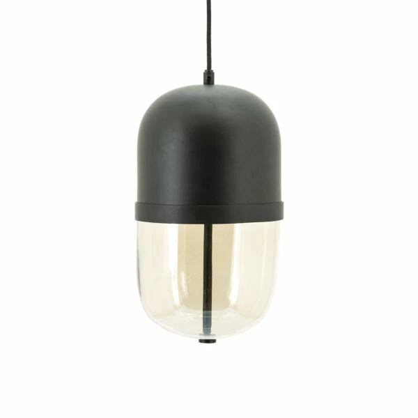 Maverick Black Hanglamp – IJzeren Afwerking – Elegante Glas Detail – 20x20x37 cm