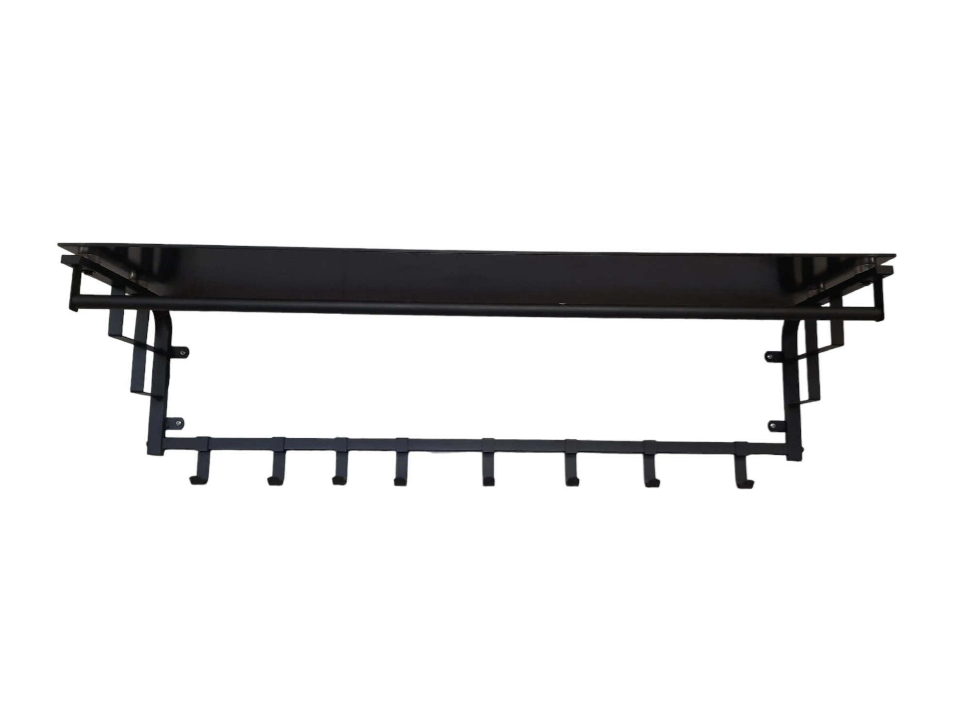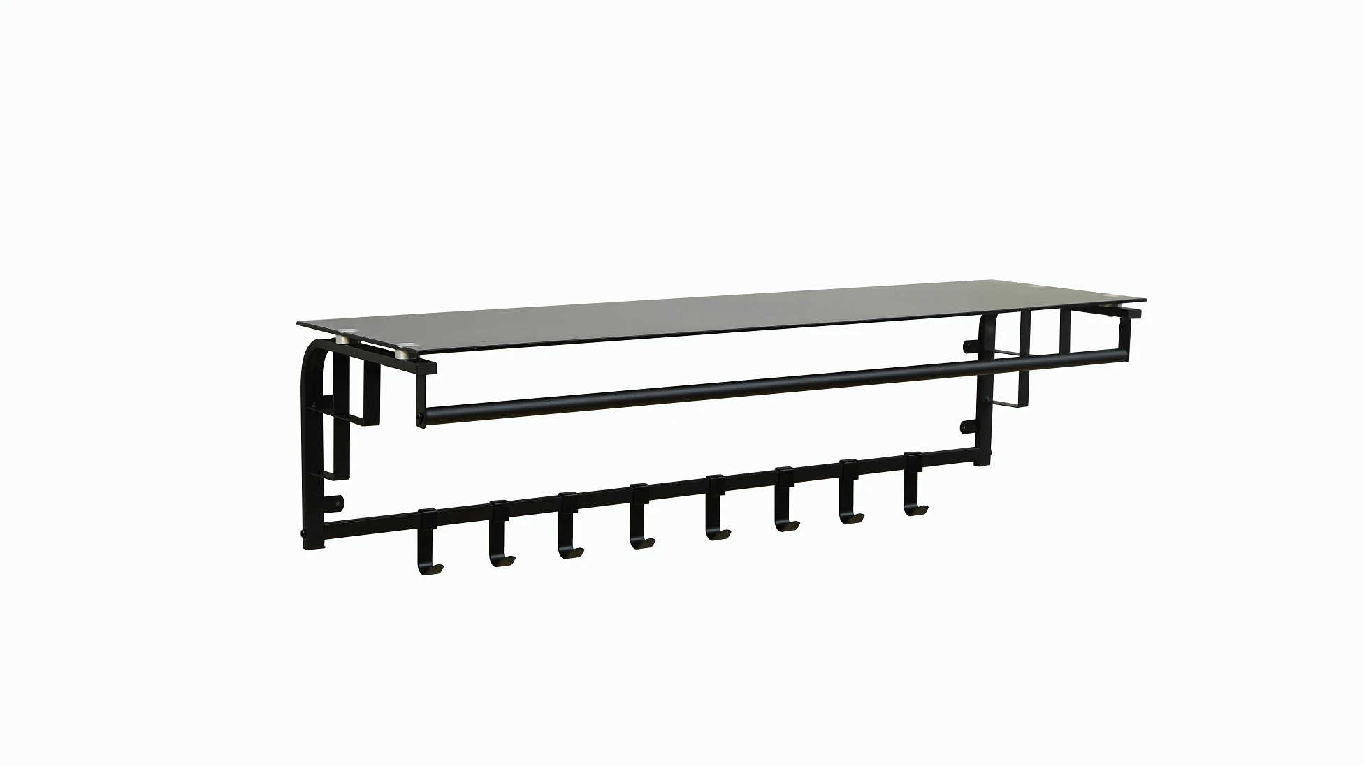 Furnilux – Kapstok 110 x 30 x 27 cm – XXXL Wand kapstok De Luxe -FAMILIE Kapstok – Hoedenplank met 8 Haken – GLAS -Zwart
