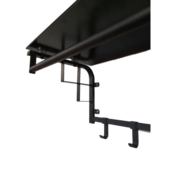 Ontdek de perfecte balans tussen elegantie en functionaliteit met onze glas en zwart wandplank en kapstok. Dit unieke meubelstuk, ideaal voor kleinere woonruimtes, biedt niet alleen een ruimtebesparende oplossing maar voegt ook een moderne en chique touch toe aan uw interieur. De combinatie van glanzend glas en een strak zwart frame maakt deze wandplank en kapstok een echte blikvanger in elke ruimte.