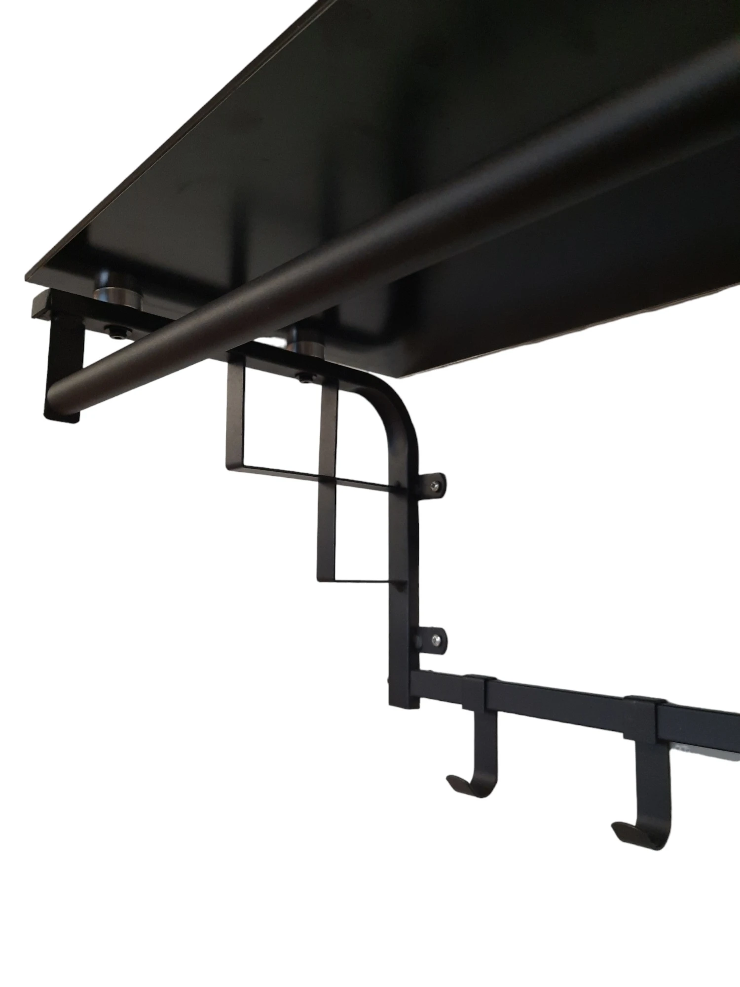 Transformeer uw huis met deze unieke glas en zwarte wandplank en kapstok. Bestel nu en geniet van de perfecte mix van schoonheid en bruikbaarheid in uw leefruimte. Deze combinatie is een slimme keuze voor iedereen die op zoek is naar een stijlvolle, ruimtebesparende oplossing.
