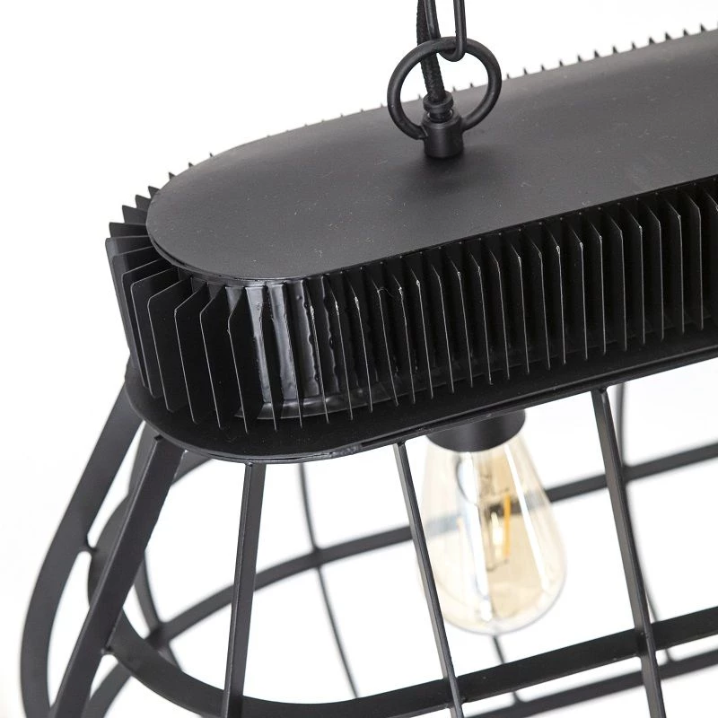 De industriële hanglamp Moonlight extra large is afkomstig uit de collectie van Furnilux en is gemaakt van zwart metaal. De vierlichts hanglamp hangt doormiddel van twee kettingen aan de rechthoekige plafondplaat. Door het open karakter van het armatuur geeft deze hanglamp moonlight XL je interieur sfeer een industriële touch. Deze hanglamp beschikt over vier E27 fittingen (grote fittingen).