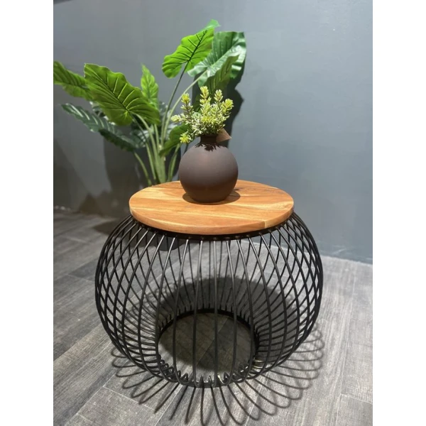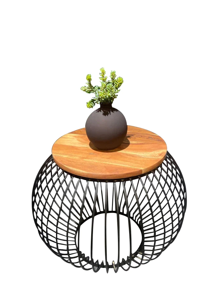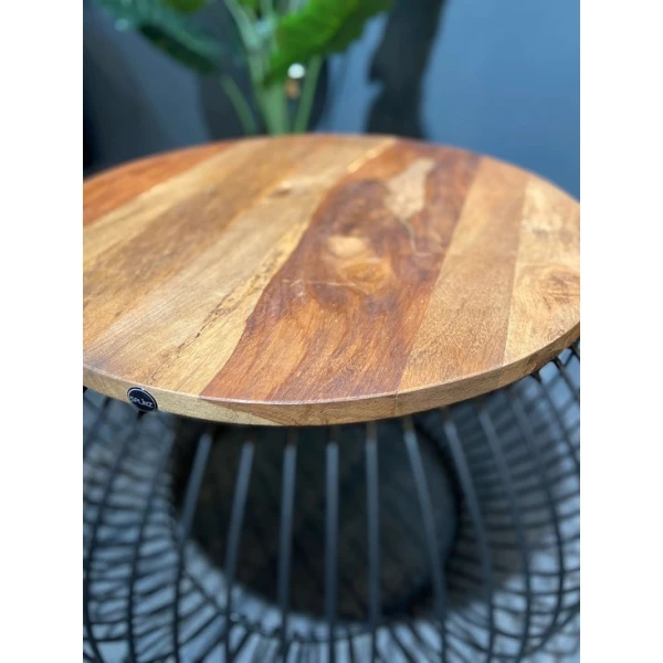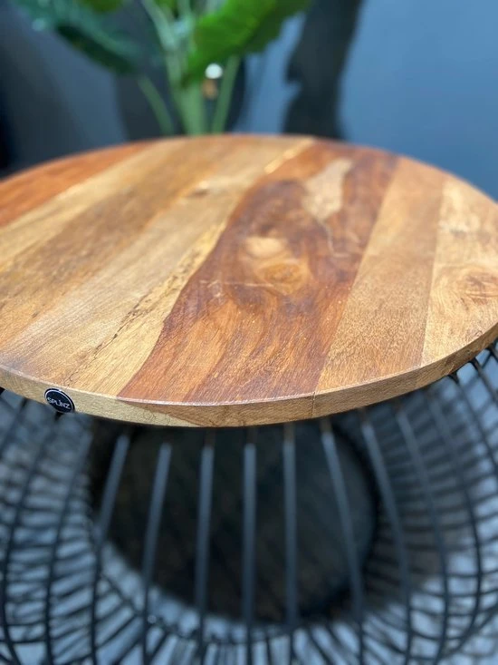 Salontafel Mangohout – Bijzettafel – Salontafel Rond – Industrieel – 65 x 65 x 51 cm