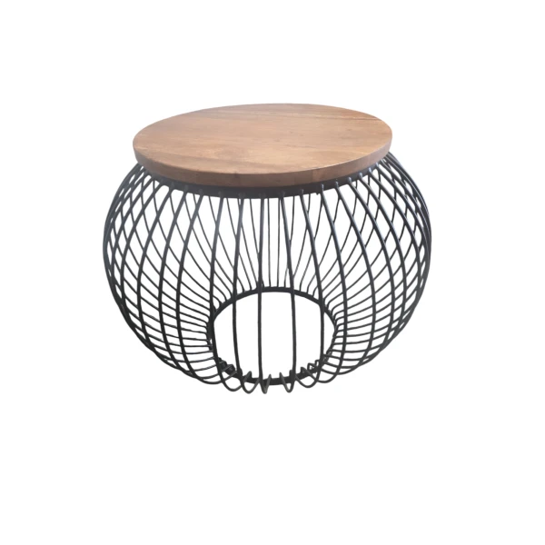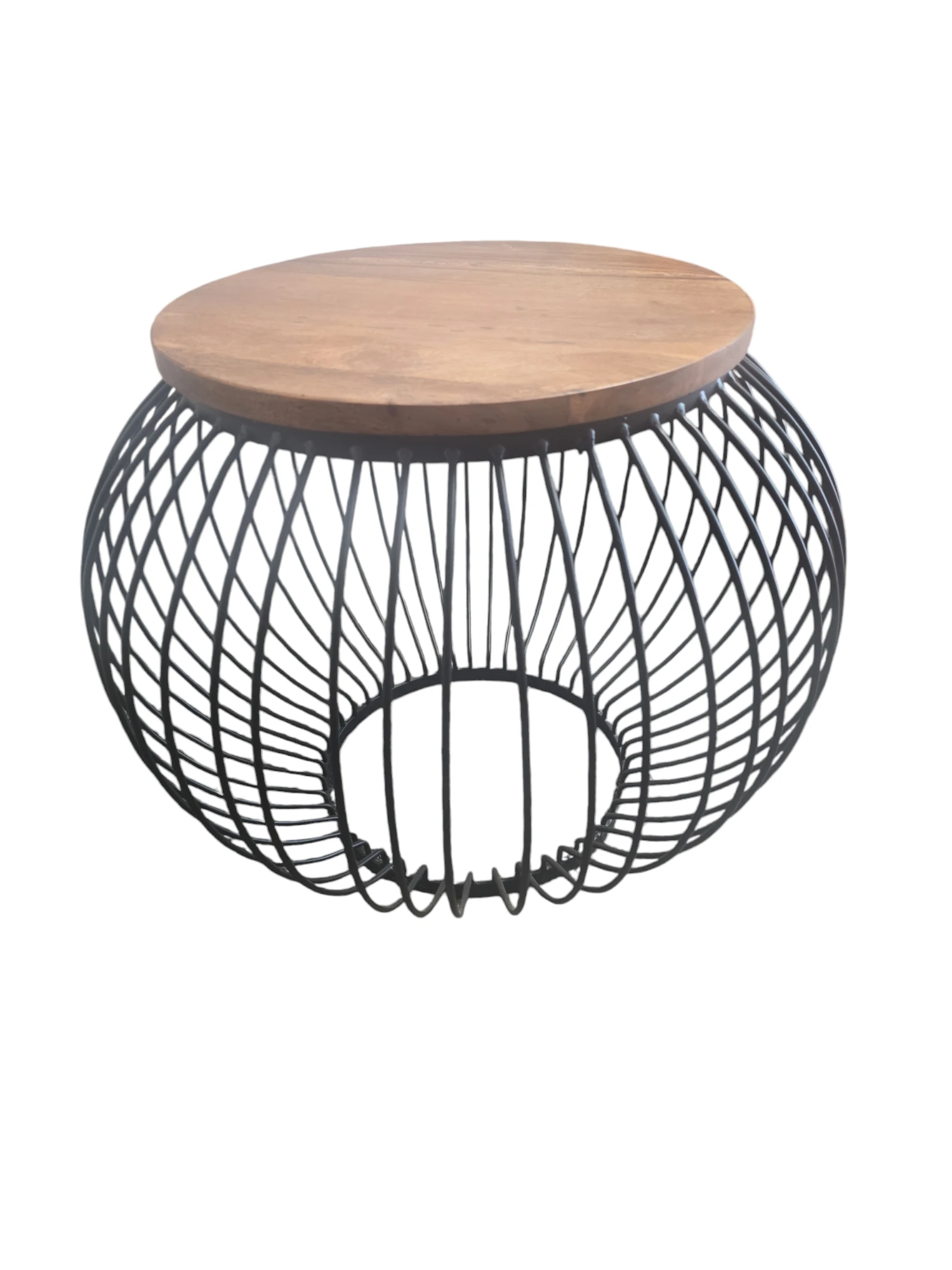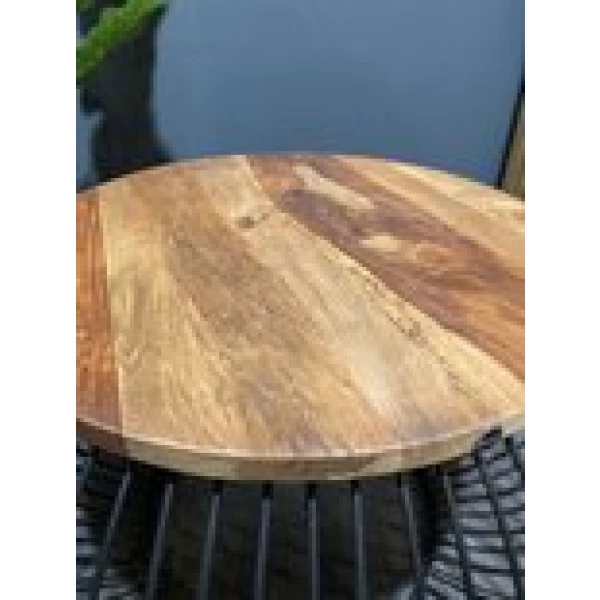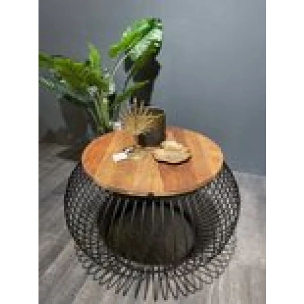 Upgrade je interieur met onze ronde Mangohouten Salontafel, een opvallend meubelstuk met een industriële uitstraling. Met een diameter van 70 cm en een hoogte van 52 cm, is deze tafel zowel functioneel als stijlvol.