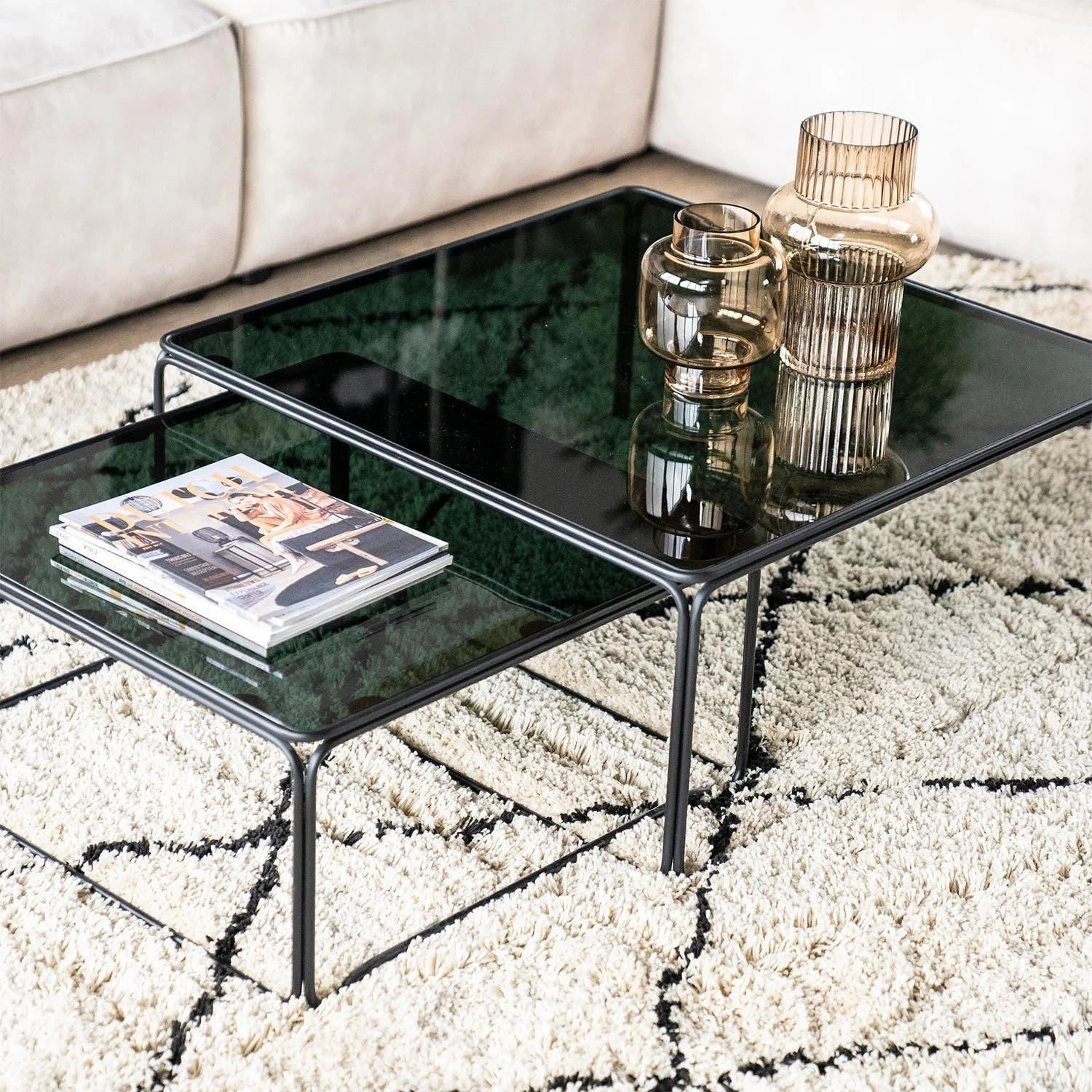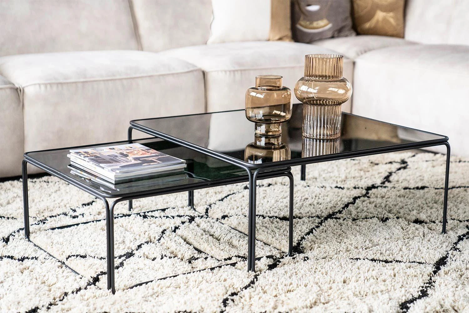 Veilig online shoppen doe je bij ons!Furnilux – Salontafel Olit large set van 2 – 75 x 75 x 33 cm van staal en glas.