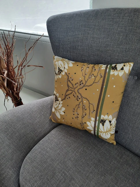 Furnilux – Set van 2 Sierkussens-45×45 cm -Bloem oker