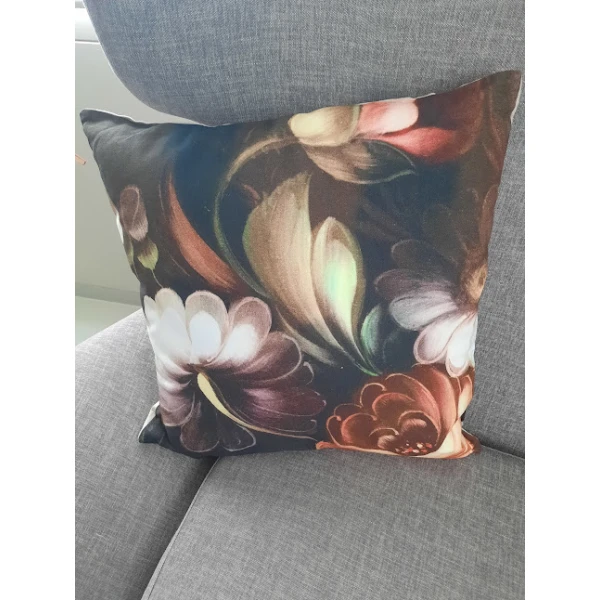 Een kussentje met een gezellige uitstraling. De kussen heeft een afmeting van 45 x 45 cm. De kussenhoes heeft een rits, zodat deze gemakkelijk van de kussenvulling kan worden afgehaald om te wassen.
