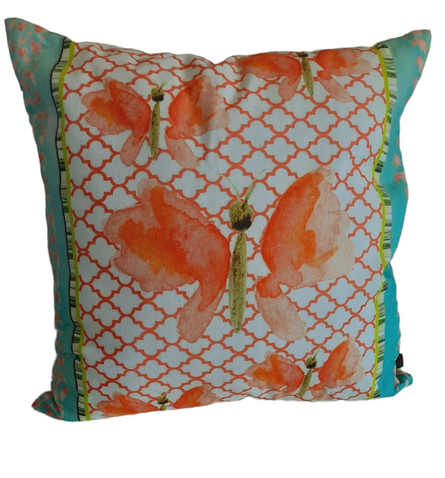 Een kussentje met een gezellige uitstraling. De kussen heeft een afmeting van 45 x 45 cm. De kussenhoes heeft een rits, zodat deze gemakkelijk van de kussenvulling kan worden afgehaald om te wassen.
