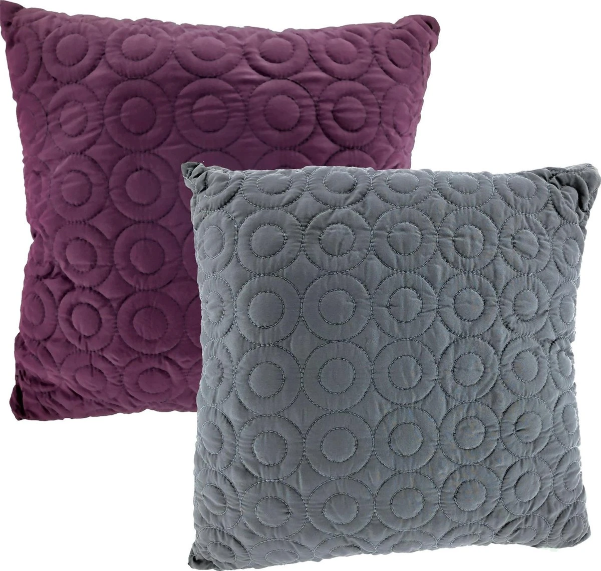 Gevulde kussens met cirkel patroon 45 x 45 cm – Aubergine & Grijs – 2 stuks